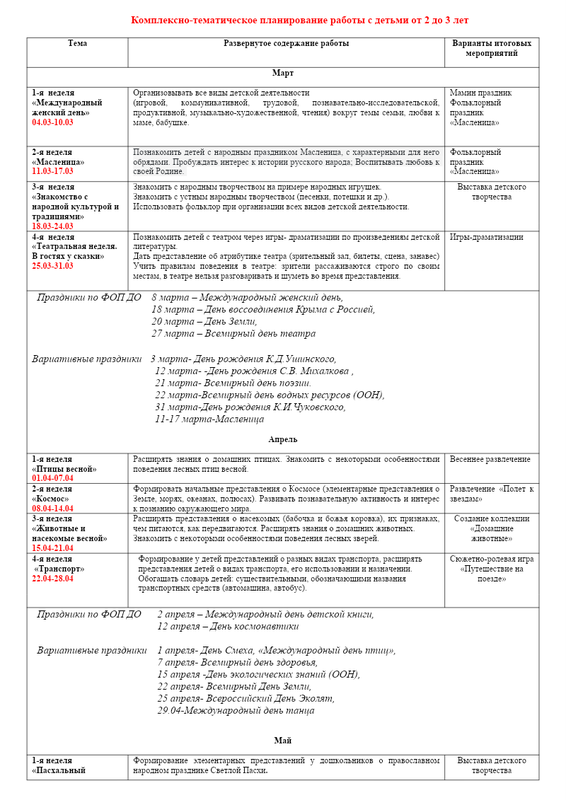 Календарно-тематическое планирование март-май 2024г.