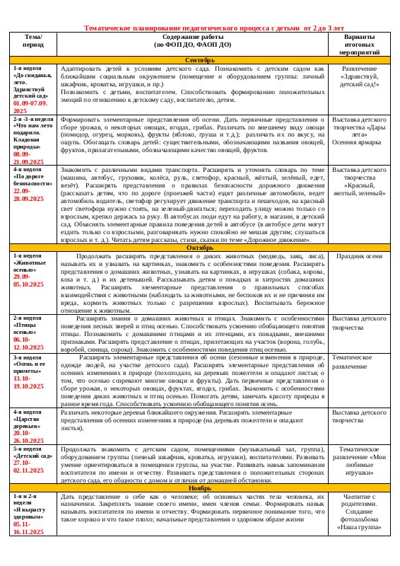 Тематическое планирование 1 квартал 2025-2026 уч.г