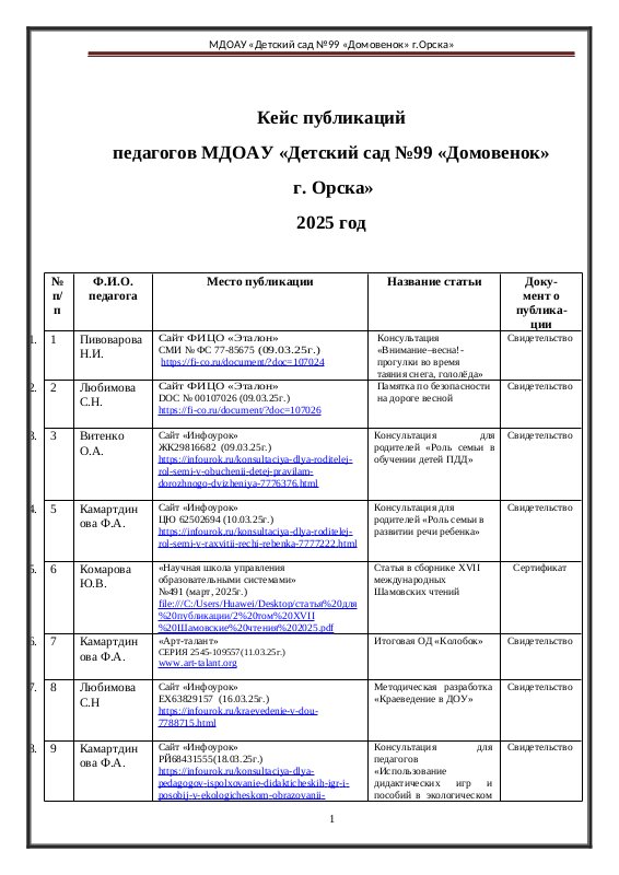 ПУБЛИКАЦИИ ПЕДАГОГОВ ДОУ